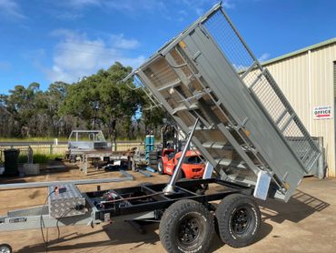 Hot Dip Galvanised, 12 Volt Electric Hydraulic Ram, Remote Pendulum, Removable 1200mm High Crate, Removable Tailgate, 450mm High Box Sides