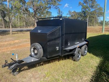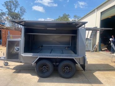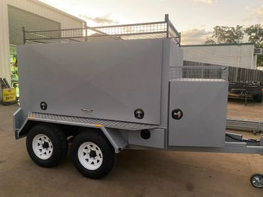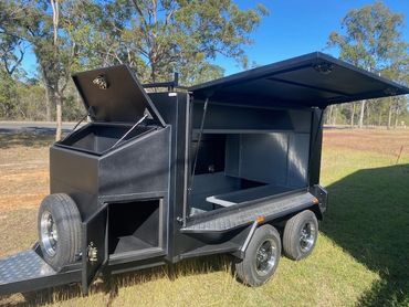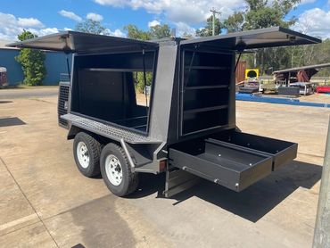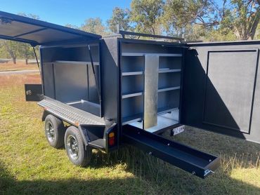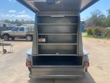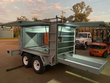 Roof Rack, Front Tool Box / Compressor Box, Checker Plate Work Bench Tops, Shelf-line Interior, Draw Slides, Back Cabinet